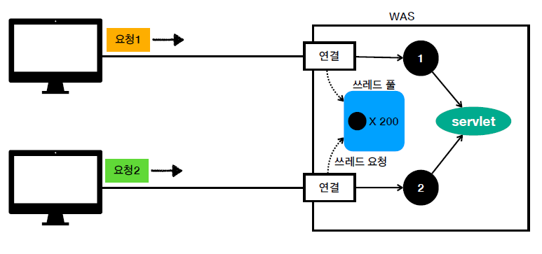 핵심은 WAS의 멀티 쓰레드 지원이다.