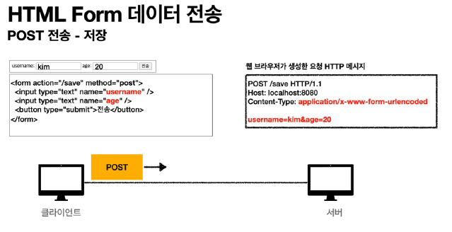 예) 아래와 같은 웹 화면에 key(username, age)와 value를 담아서 전송을 하면