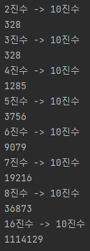 System.out.println("2진수 -> 10진수");