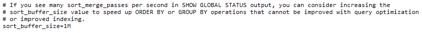 1. 기존에 주석으로 처리되어 있어 주석 해제 후 sort_buffer_size=1M으로 수정했습니다.